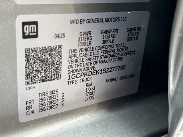 2025 Chevrolet Silverado 1500 LT LT1CARFAX One-Owner. 10-Way Power Driver Seat w/Lumbar, 12.3 Multicolor Reconfigurable Digital Display, 120-Volt Bed Mounted Power Outlet, 120-Volt Interior Power Outlet, 3.42 Rear Axle Ratio, 4-Wheel Disc Brakes, 40/20/40 Front Split-Bench Seat, 6 Speakers, 6-Speaker Audio System, ABS brakes, Air Conditioning, All-Star Edition, Alloy wheels, AM/FM radio: SiriusXM with 360L, Apple CarPlay/Android Auto, Auto High-beam Headlights, Auto-Locking Rear Differential, Automatic Emergency Braking, Automatic temperature control, Bluetooth For Phone, Brake assist, Bumpers: chrome, Chrome Mirror Caps, Cloth Seat Trim, Color-Keyed Carpeting Floor Covering, Compass, Convenience Package, Deep-Tinted Glass, Delay-off headlights, Driver door bin, Driver vanity mirror, Dual front impact airbags, Dual front side impact airbags, Dual Rear USB Ports (Charge Only), Dual-Zone Automatic Climate Control, Electric Rear-Window Defogger, Electronic Cruise Control, Electronic Stability Control, Emergency communication system: OnStar, Following Distance Indicator, Forward Collision Alert, Front anti-roll bar, Front Center Armrest w/Storage, Front dual zone A/C, Front Frame-Mounted Black Recovery Hooks, Front Pedestrian Braking, Front reading lights, Front wheel independent suspension, Fully automatic headlights, HD Rear Vision Camera, Heated door mirrors, Heated Driver & Front Outboard Passenger Seats, Heated front seats, Heated Steering Wheel, Heated steering wheel, Hitch Guidance, Illuminated entry, Integrated Trailer Brake Controller, IntelliBeam Automatic High Beam On/Off, Keyless Open & Start, Lane Keep Assist w/Lane Departure Warning, LED Cargo Area Lighting, Low tire pressure warning, Manual Tilt/Telescoping Steering Column, Occupant sensing airbag, OnStar Services Capable, Outside temperature display, Overhead airbag, Overhead console, Panic alarm, Passenger door bin, Passenger vanity mirror, Power door mirrors, Power driver seat, Power Front Windows w/Driver Express Up/Down, Power Front Windows w/Passenger Express Down, Power Rear Windows w/Express Down, Power steering, Power windows, Premium audio system: Chevrolet Infotainment 3 Premium, Radio data system, Radio: Chevrolet Infotainment 3 Premium System, Rear 60/40 Folding Bench Seat (Folds Up), Rear reading lights, Rear step bumper, Rear window defroster, Remote keyless entry, Remote Vehicle Starter System, Security system, SiriusXM w/360L Trial Subscription, Speed control, Speed-sensing steering, Split folding rear seat, Standard Suspension Package, Steering Wheel Audio Controls, Steering wheel mounted audio controls, Tachometer, Teen Driver, Telescoping steering wheel, Theft Deterrent System (Unauthorized Entry), Tilt steering wheel, Tire Pressure Monitoring System, Traction control, Trailering Package, Trip computer, Variably intermittent wipers, Voltmeter, Wheels: 18 x 8.5 Bright Silver Painted Aluminum, Wi-Fi Hot Spot Capable, Wrapped Steering Wheel.17/20 City/Highway MPGAt Larry H Miller Chrysler Jeep Avondale, we believe in providing our guests with a quality experience. With one of the widest used-car inventory selections in the valley, our seasoned sales professionals will ensure that your needs and wants are satisfied during the purchase of your next vehicle. Feel free to browse our online listings, and please reach out with any additional questions or requests. We are always happy to assist and ensure that your purchase is easy and enjoyable.Convenience Package (10-Way Power Driver Seat w/Lumbar, 120-Volt Bed Mounted Power Outlet, 120-Volt Interior Power Outlet, Dual Rear USB Ports (Charge Only), Dual-Zone Automatic Climate Control, Heated Driver & Front Outboard Passenger Seats, Heated Steering Wheel, Keyless Open & Start, LED Cargo Area Lighting, Manual Tilt/Telescoping Steering Column, and Wrapped Steering Wheel), Standard Suspension Package, Trailering Package (Hitch Guidance), 12.3 Multicolor Reconfigurabl